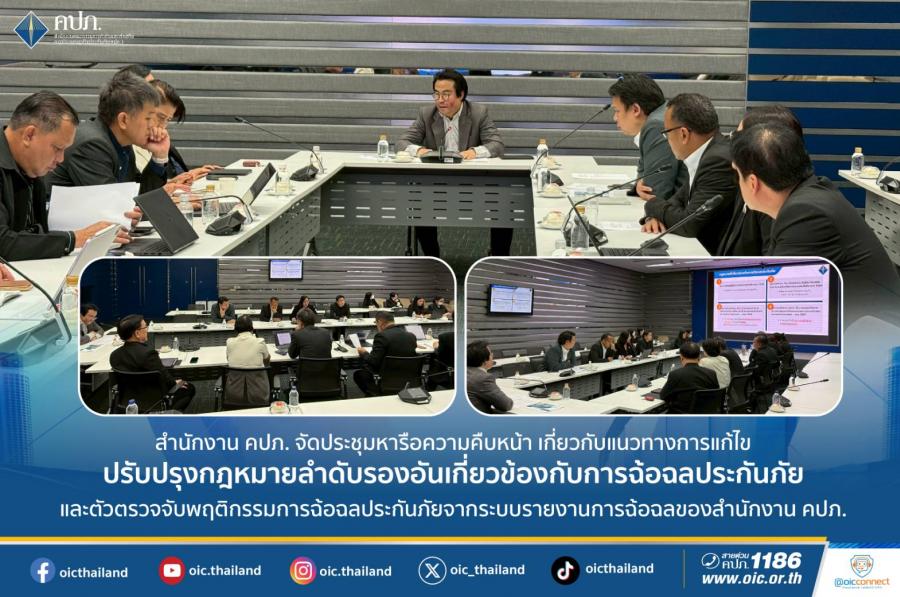 คปภ. จัดประชุมหารือความคืบหน้า เกี่ยวกับแนวทางการแก้ไขปรับปรุงกฎหมายลำดับรอง อันเกี่ยวข้องกับการฉ้อฉลประกันภัย และตัวตรวจจับพฤติกรรมการฉ้อฉลประกันภัยจากระบบรายงานการฉ้อฉล ของสำนักงาน คปภ.