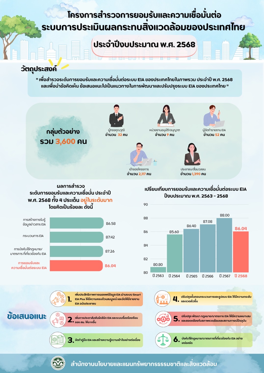 ผลการสำรวจการยอมรับและความเชื่อมั่นต่อระบบการประเมินผลกระทบสิ่งแวดล้อมของประเทศไทย ประจำปีงบประมาณ พ.ศ. 2568