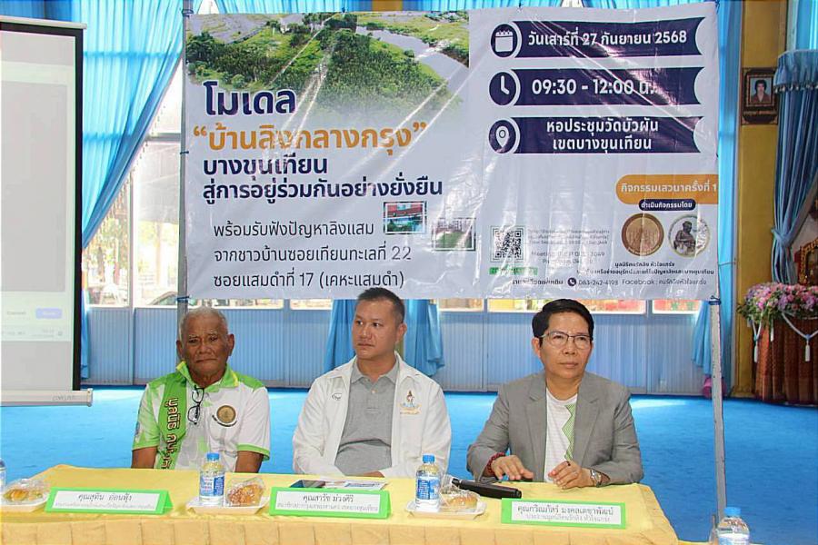 โดยผู้แทนชาวบ้านกล่าวถึงผลกระทบที่ได้รับจากฝูงลิงแสมบางขุนเทียน ที่มีอยู่มากกว่าร้อยตัว ขณะที่หน่วยงานภาครัฐไม่นิ่งนอนใจแก้ไขปัญหาอย่างต่อเนื่อง แต่ติดขัดเรื่องงบประมาณที่ค่อนข้างสูง และมีการพิจารณาการทำ โมเดล “บ้านลิงกลางกรุง” บางขุนเทียน ในพื้นที่ 1 ไร่ ใกล้เคียงกับพื้นที่ 12 ไร่ สู่การอยู่ร่วมกันอย่างยั่งยืน คาดใช้เวลาไม่นานโมเดลนี้จะเสร็จสมบูรณ์