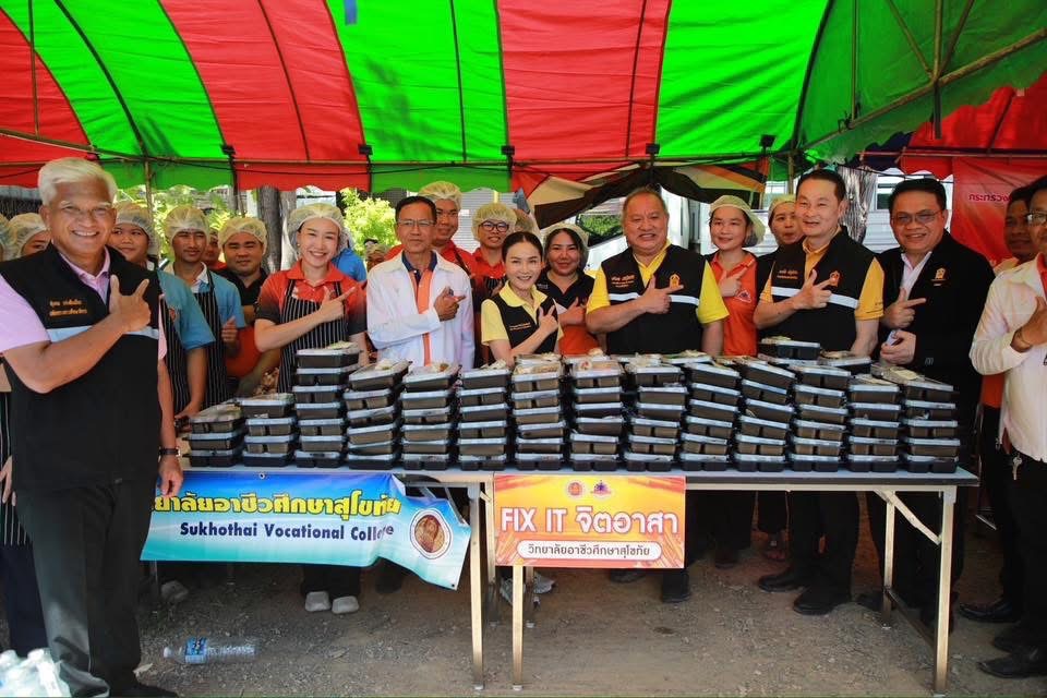 นอกจากนี้ ยังได้เยี่ยมชม ศูนย์ซ่อมสร้างเพื่อชุมชน (Fix It จิตอาสา) ที่สำนักงานอาชีวศึกษาจังหวัดสุโขทัย โดยความร่วมมือของวิทยาลัยเทคนิคสุโขทัย วิทยาลัยอาชีวศึกษาสุโขทัย และวิทยาลัยอาชีวศึกษาในจังหวัดสุโขทัยรวม 7 แห่ง ที่ระดมกำลังช่างจากสาขาต่าง ๆ อาทิ ช่างยนต์ ไฟฟ้า อิเล็กทรอนิกส์ การตัดผม และการประกอบอาหาร เพื่อให้บริการและบรรเทาความเดือดร้อนแก่ประชาชนในพื้นที่