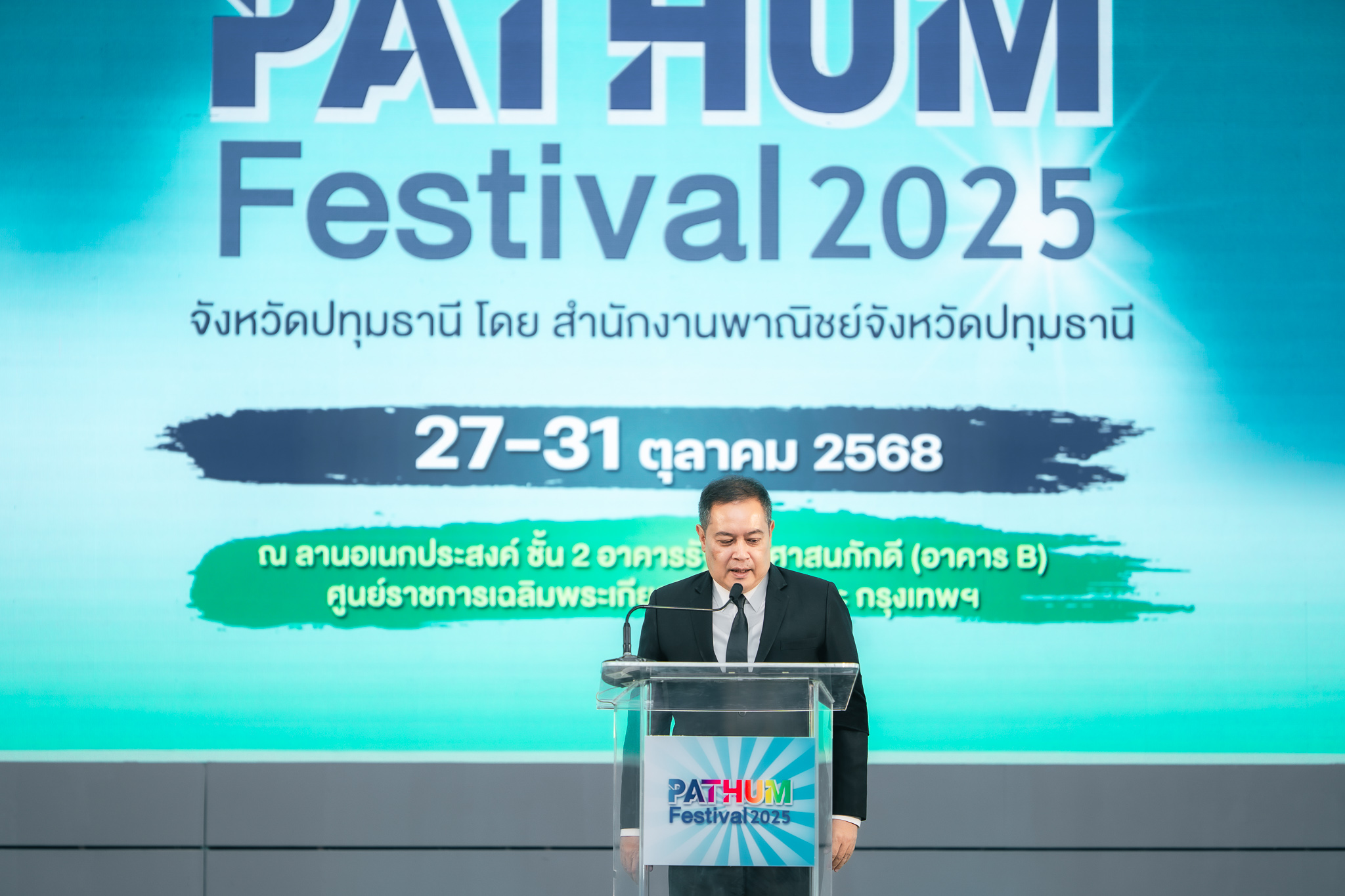 จังหวัดปทุมธานี โดยสำนักงานพาณิชย์จังหวัดปทุมธานี เตรียมจัดงานใหญ่แห่งปี “Pathum Festival 2025” มหกรรมการแสดงและจำหน่ายสินค้าคุณภาพจากปทุมธานี เพื่อตอบโจทย์ความต้องการของผู้บริโภคและสร้างโอกาสในการเจรจาธุรกิจระหว่างผู้ประกอบการ โดยกำหนดจัดขึ้นระหว่างวันที่ 27 – 31 ตุลาคม 2568 ณ อาคาร B ศูนย์ราชการเฉลิมพระเกียรติฯ ถนนแจ้งวัฒนะ
