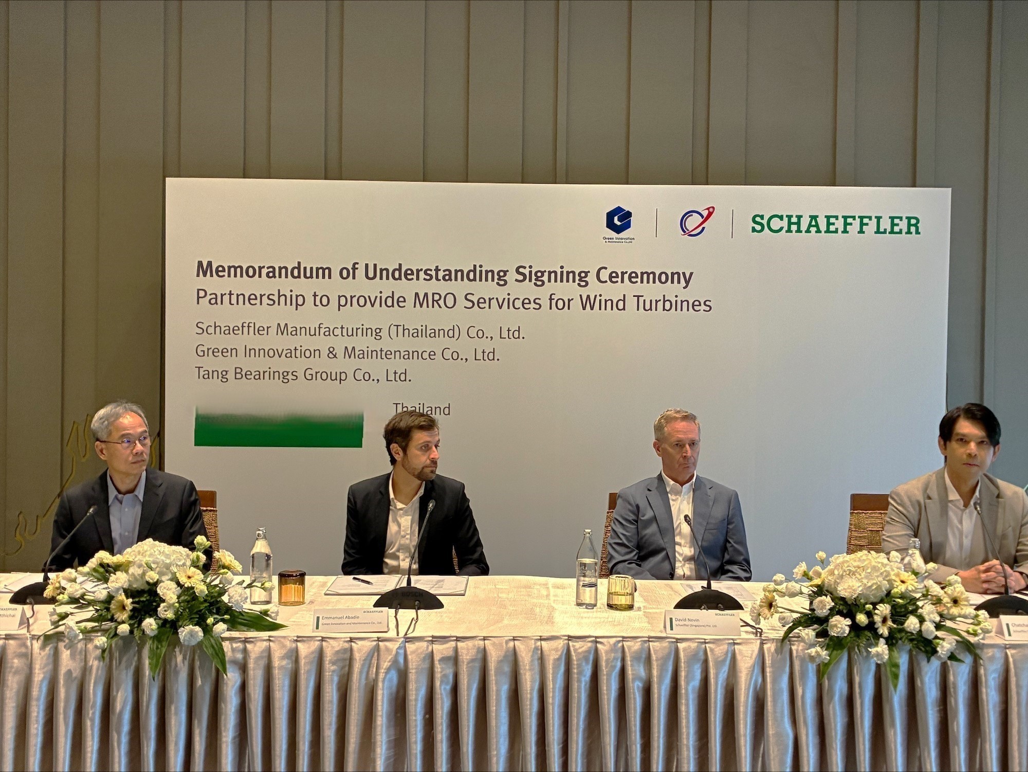 แชฟฟ์เลอร์ประกาศลงนามบันทึกความเข้าใจร่วมกับกรีน อินโนเวชั่น แอนด์ เมนเทนแนนซ์ และตั้ง แบริ่งส์กรุ๊ป เพื่อพัฒนาอุตสาหกรรมพลังงานลมในไทย