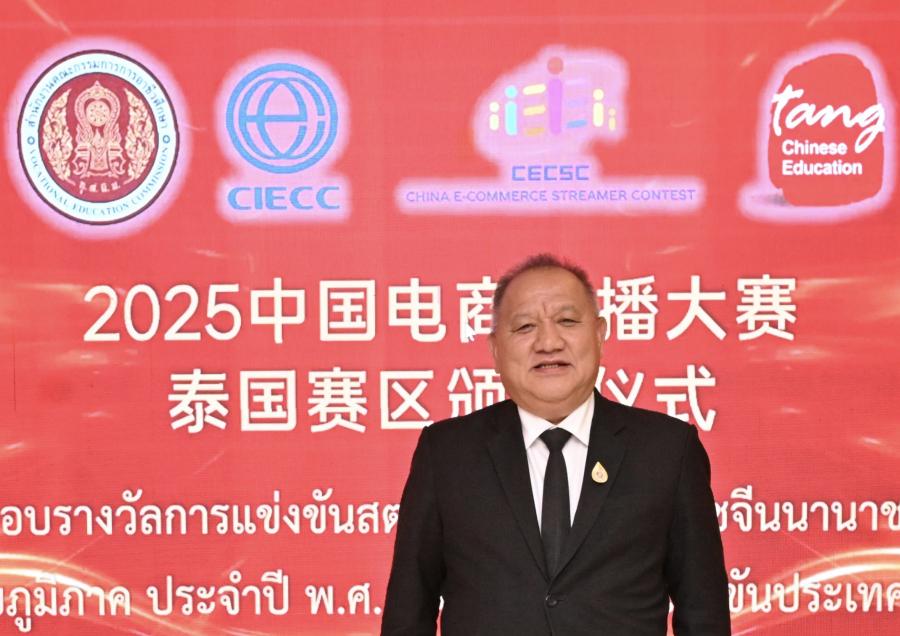 วันที่ 12 ธันวาคม 2568 นายยศพล เวณุโกเศศ เลขาธิการคณะกรรมการการอาชีวศึกษา (เลขาธิการ กอศ.) เป็นประธานมอบเกียรติบัตรและรางวัลการแข่งขันสตรีมเมอร์อีคอมเมิร์ซจีนนานาชาติ ระดับภูมิภาค ปี 2568 เขตพื้นที่การแข่งขันประเทศไทย ณ ห้องประชุม 5 สำนักงานคณะกรรมการการอาชีวศึกษา โดยมี นายหวัง เว่ยหยาง คณบดีสถาบันการศึกษานานาชาติและความร่วมมืออุตสาหกรรมการศึกษา บริษัท ถัง อินเตอร์เนชั่นแนล กรุ๊ป นายธนภัทร แสงจันทร์ ผู้อำนวยการสำนักความร่วมมือ ผู้แทนบริษัท ถัง อินเตอร์เนชั่นแนล เอ็ดดูเคชั่น แอนด์ เทคโนโลยี จำกัด ผู้บริหารสถานศึกษา ครู และนักศึกษา ผู้เกี่ยวข้อง เข้าร่วมออนไซต์ และผ่านระบบออนไลน์ที่สาธารณรัฐประชาชนจีน และประเทศปากีสถาน