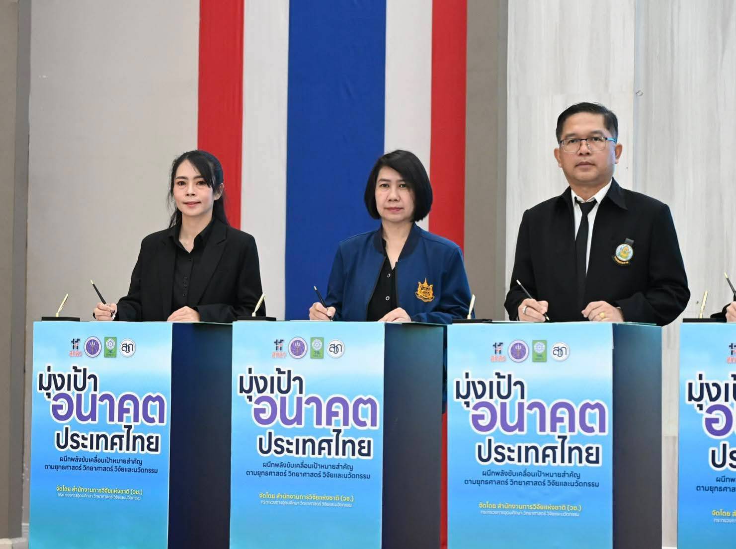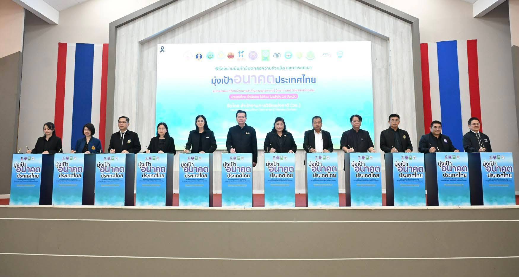 วันที่ 23 ธันวาคม 2568 สำนักงานการวิจัยแห่งชาติ (วช.) กระทรวงการอุดมศึกษา วิทยาศาสตร์ วิจัยและนวัตกรรม ร่วมกับ จังหวัดกำแพงเพชร และภาคีเครือข่ายในพื้นที่ จัดพิธีลงนามบันทึกข้อตกลงความร่วมมือกิจกรรม “มุ่งเป้าอนาคตประเทศไทย น้ำมั่นคง ไม่ท่วม ไม่แล้ง” เพื่อขับเคลื่อนเป้าหมายสำคัญตามยุทธศาสตร์ ววน.