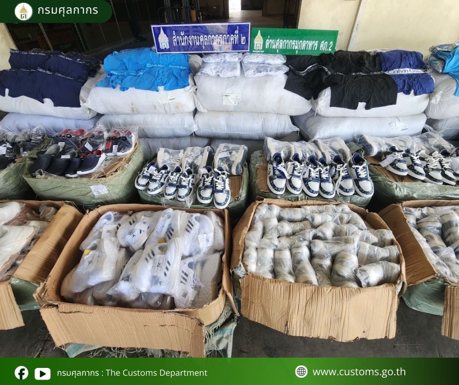 ผลการตรวจสอบ พบสินค้าที่ไม่ได้สำแดง ได้แก่ รองเท้า จำนวน 550 คู่ กางเกงในสำหรับผู้ชาย จำนวน 4000 ตัว กระเป๋า จำนวน 313 ใบ ถุงมือ จำนวน 40 คู่ และต่างหู จำนวน 211 คู่ ละเมิดเครื่องหมายการค้า เมืองกำเนิดต่างประเทศ น้ำหนักรวม 812.00 กิโลกรัม มูลค่าความเสียหายทางเศรษฐกิจรวมกว่า 13 ล้านบาท จึงยึดสินค้าทั้งหมดเก็บรักษาไว้ เพื่อดำเนินการตามกฎหมายต่อไป